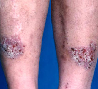 3、慢性湿疹的症状:由急性湿疹、亚急性湿疹反反复作转变而来。表现为皮肤粗糙、抓痕、结痂、浸泡肥厚,部分苔藓样变、呈暗红色或伴色素沉着,外周可散在有丘疱疹。