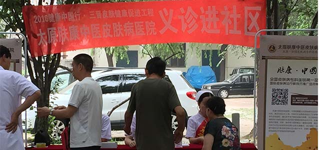 据悉,为了让更多的老百姓受益,受惠,由太原肤康中医皮肤病医院承办的“2016健康中国行·皮肤健康促进工程”社区义诊活动将持续到11月份。居民也可通过拨打公益咨询热线