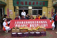 又是一年九九重阳节。在中国传统的重阳节即将来临之际,太原肤康皮肤病医院志愿者服务队在杨中楠院长的带领下来到太原市幸福家园老年公寓,为老人送上节日问候。 尊老、敬老、爱老是中华民族的传统美德,关爱老年人的晚年生活是社会的共同心愿,也是肤康志愿....[详情点击]