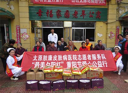 又是一年九九重阳节。在中国传统的重阳节即将来临之际,太原肤康皮肤病医院志愿者服务队在杨中楠院长的带领下来到太原市幸福家园老年公寓,为老人送上节日问候。