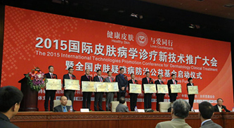 导语: 2015年10月11日,由中国医疗保健国际合作推广专业委员会、全国皮肤病防治工程组委会、中国中西医结合学会皮肤专业委员会、中华慈善总会、白求恩基金会等部委联合发起的“2015国际皮肤病学诊疗新技术推广大会”,在北京人大会议中心隆重召开,来自国内外皮肤学领域的泰斗、精英、医生和学者齐聚首都,太原肤康教授团主任携团队亮相亮相本次推广大会。